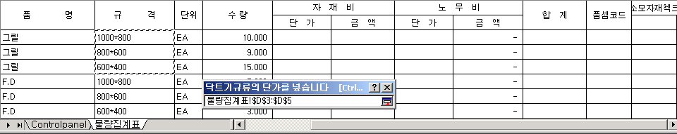 ´Ü°¡¸¦ ³»¿ª¼ÀÇ ´Ü°¡¿Í ÇöÀåÀÏÀ§´ë°¡Ç¥ÀÇ ´Ü°¡¿¡ LinkÇÏ¿© ¹°·®Áý°èÇ¥¿¡¼